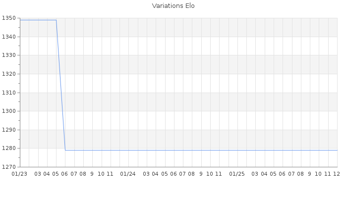 Date d'inscription : 01/11/22. Donateur pour EchecsEmail : Non ( Cliquez ici pour soutenir EchecsEmail. ) Elo non arrondi:1243.3 ( 496 sur 456 joueurs ) Nombre de victoires :0 Nombre de nulles :0 Nombre de défaites :6 Temps de réponse moyen par coup : 1J 16H 32M 56S ( Moyenne sur 0 coups ). Rd ( Un petit rd indique un elo fiable ) : 178 Elo maximum atteint ( en étant classé ) :0 Elo maximum atteint cette année :0 Nombre coups joués : 40 Classement coupe : Inactif Points coupe : 0 Classement Coupe Magic Chess : Inactif Points Coupe Magic Chess : 0 Tournoi échelle : Nombre de tournois gagnés :0