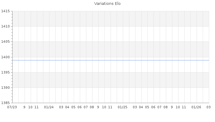 Date d'inscription : 13/07/23. Donateur pour EchecsEmail : Non ( Cliquez ici pour soutenir EchecsEmail. ) Elo non arrondi:1357 ( 467 sur 442 joueurs ) Nombre de victoires :0 Nombre de nulles :0 Nombre de défaites :0 Rd ( Un petit rd indique un elo fiable ) : 350 Elo maximum atteint ( en étant classé ) :0 Elo maximum atteint cette année :0 Nombre coups joués : 1 Classement coupe : Inactif Points coupe : 0 Classement Coupe Magic Chess : Inactif Points Coupe Magic Chess : 0 Tournoi échelle : Nombre de tournois gagnés :0