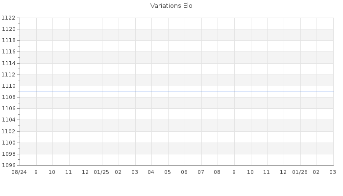 Date d'inscription : 19/08/24. Donateur pour EchecsEmail : Non ( Cliquez ici pour soutenir EchecsEmail. ) Elo non arrondi:1076.2 ( 484 sur 440 joueurs ) Nombre de victoires :0 Nombre de nulles :0 Nombre de défaites :1 Temps de réponse moyen par coup : 0J 3H 32M 17S ( Moyenne sur 0 coups ). Rd ( Un petit rd indique un elo fiable ) : 272 Elo maximum atteint ( en étant classé ) :0 Elo maximum atteint cette année :0 Nombre coups joués : 16 Classement coupe : Inactif Points coupe : 0 Classement Coupe Magic Chess : Inactif Points Coupe Magic Chess : 0 Tournoi échelle : Nombre de tournois gagnés :0
