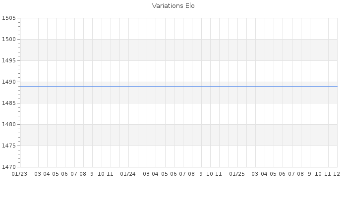 Date d'inscription : 28/11/20. Donateur pour EchecsEmail : Non ( Cliquez ici pour soutenir EchecsEmail. ) Elo non arrondi:1434.3 ( 599 sur 449 joueurs ) Nombre de victoires :0 Nombre de nulles :0 Nombre de défaites :1 Rd ( Un petit rd indique un elo fiable ) : 340 Elo maximum atteint ( en étant classé ) :0 Elo maximum atteint cette année :0 Nombre coups joués : 15 Classement coupe : Inactif Points coupe : 0 Classement Coupe Magic Chess : Inactif Points Coupe Magic Chess : 0 Tournoi échelle : Nombre de tournois gagnés :0