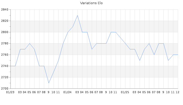Date d'inscription : 26/09/18. Donateur pour EchecsEmail : Non ( Cliquez ici pour soutenir EchecsEmail. ) Elo non arrondi:2759.3 ( 10 sur 449 joueurs ) Nombre de victoires :250 Nombre de nulles :209 Nombre de défaites :19 Temps de réponse moyen par coup : 0J 15H 38M 10S ( Moyenne sur 284 coups ). Rd ( Un petit rd indique un elo fiable ) : 84 Elo maximum atteint ( en étant classé ) :2830 Elo maximum atteint cette année :2790 Nombre coups joués : 17120 Inscrit dans l' équipe:les modestes Classement coupe : 3 Points coupe : 20280.1 Classement Coupe Magic Chess : Inactif Points Coupe Magic Chess : 0 Tournoi échelle : Inactif. Tournois gagnés : 31/10/2018 : Cat 4 : Victoire dans le tournoi n°18747 Nombre de tournois gagnés :1