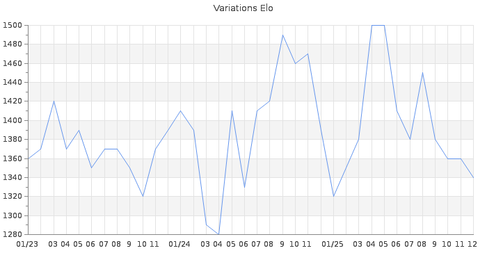 Date d'inscription : Avant le 20/12/05. Donateur pour EchecsEmail : Non ( Cliquez ici pour soutenir EchecsEmail. ) Elo non arrondi:1339.2 ( 421 sur 454 joueurs ) Nombre de victoires :9824 Nombre de nulles :443 Nombre de défaites :16306 Temps de réponse moyen par coup : 0J 6H 23M 7S ( Moyenne sur 8961 coups ). Rd ( Un petit rd indique un elo fiable ) : 50 Magic Elo:1362.94 Magic Rd : 80 Elo maximum atteint ( en étant classé ) :1730 Elo maximum atteint cette année :1510 Nombre coups joués : 885329 Inscrit dans l' équipe:fouschess Classement coupe : 50 Points coupe : 492.23 Classement Coupe Magic Chess : Inactif Points Coupe Magic Chess : 0 Tournoi échelle : Inactif. Tournois gagnés : 29/11/2025 : Cat 2 : Victoire dans le tournoi n°27025 10/11/2025 : Cat 1 : Victoire dans le tournoi n°27096 07/11/2025 : Cat 2 : Victoire dans le tournoi n°27177 01/10/2025 : Cat 1 : Victoire dans le tournoi n°26919 16/09/2025 : Cat 1 : Victoire dans le tournoi n°26996 22/07/2025 : Cat 1 : Victoire dans le tournoi n°26862 09/07/2025 : Cat 1 : Victoire dans le tournoi n°26713 27/06/2025 : Cat 1 : Victoire dans le tournoi n°26764 19/06/2025 : Cat 2 : Victoire dans le tournoi n°26784 07/06/2025 : Cat 1 : Victoire dans le tournoi n°26742 01/05/2025 : Cat 1 : Victoire dans le tournoi n°26675 28/04/2025 : Cat 1 : Victoire dans le tournoi n°26637 17/04/2025 : Cat 1 : Victoire dans le tournoi n°26638 26/03/2025 : Cat 1 : Victoire dans le tournoi n°26590 17/02/2025 : Cat 1 : Victoire dans le tournoi n°26444 30/12/2024 : Cat 2 : Victoire dans le tournoi n°26302 22/10/2024 : Cat 1 : Victoire dans le tournoi n°26090 16/09/2024 : Cat 1 : Victoire dans le tournoi n°26039 10/09/2024 : Cat 1 : Victoire dans le tournoi n°26030 23/08/2024 : Cat 1 : Victoire dans le tournoi n°25993 27/07/2024 : Cat 1 : Victoire dans le tournoi n°25912 12/07/2024 : Cat 1 : Victoire dans le tournoi n°25887 19/06/2024 : Cat 1 : Victoire dans le tournoi n°25838 11/05/2024 : Cat 1 : Victoire dans le tournoi n°25799 04/03/2024 : Cat 1 : Victoire dans le tournoi n°25500 28/02/2024 : Cat 1 : Victoire dans le tournoi n°25409 13/02/2024 : Cat 1 : Victoire dans le tournoi n°25578 06/02/2024 : Cat 1 : Victoire dans le tournoi n°25536 27/01/2024 : Cat 2 : Victoire dans le tournoi n°25513 14/01/2024 : Cat 2 : Victoire dans le tournoi n°25452 26/12/2023 : Cat 1 : Victoire dans le tournoi n°25446 22/12/2023 : Cat 0 : Victoire dans le tournoi n°25285 02/10/2023 : Cat 2 : Victoire dans le tournoi n°25236 05/08/2023 : Cat 1 : Victoire dans le tournoi n°25077 05/07/2023 : Cat 2 : Victoire dans le tournoi n°25031 15/06/2023 : Cat 1 : Victoire dans le tournoi n°24980 18/04/2023 : Cat 1 : Victoire dans le tournoi n°24761 16/04/2023 : Cat 1 : Victoire dans le tournoi n°24786 27/12/2022 : Cat 2 : Victoire dans le tournoi n°24407 02/12/2022 : Cat 1 : Victoire dans le tournoi n°24417 29/11/2022 : Cat 1 : Victoire dans le tournoi n°24291 11/11/2022 : Cat 1 : Victoire dans le tournoi n°24314 02/08/2022 : Cat 2 : Victoire dans le tournoi n°24111 18/07/2022 : Cat 1 : Victoire dans le tournoi n°23981 04/07/2022 : Cat 1 : Victoire dans le tournoi n°23793 15/06/2022 : Cat 1 : Victoire dans le tournoi n°23931 13/06/2022 : Cat 2 : Victoire dans le tournoi n°23948 02/06/2022 : Cat 2 : Victoire dans le tournoi n°23910 30/04/2022 : Cat 1 : Victoire dans le tournoi n°23819 31/01/2022 : Cat 1 : Victoire dans le tournoi n°23564 24/11/2021 : Cat 1 : Victoire dans le tournoi n°23366 18/10/2021 : Cat 2 : Victoire dans le tournoi n°23238 15/10/2021 : Cat 1 : Victoire dans le tournoi n°23208 14/10/2021 : Cat 2 : Victoire dans le tournoi n°23185 25/09/2021 : Cat 2 : Victoire dans le tournoi n°22933 20/09/2021 : Cat 1 : Victoire dans le tournoi n°23169 19/09/2021 : Cat 1 : Victoire dans le tournoi n°23121 16/09/2021 : Cat 1 : Victoire dans le tournoi n°23064 15/09/2021 : Cat 1 : Victoire dans le tournoi n°23129 17/08/2021 : Cat 1 : Victoire dans le tournoi n°22555 07/08/2021 : Cat 2 : Victoire dans le tournoi n°22864 01/08/2021 : Cat 1 : Victoire dans le tournoi n°22985 30/07/2021 : Cat 2 : Victoire dans le tournoi n°22770 28/07/2021 : Cat 2 : Victoire dans le tournoi n°22967 27/07/2021 : Cat 2 : Victoire dans le tournoi n°22843 24/07/2021 : Cat 2 : Victoire dans le tournoi n°22937 19/07/2021 : Cat 2 : Victoire dans le tournoi n°22892 03/07/2021 : Cat 2 : Victoire dans le tournoi n°22597 18/05/2021 : Cat 2 : Victoire dans le tournoi n°22773 04/05/2021 : Cat 2 : Victoire dans le tournoi n°22681 13/04/2021 : Cat 1 : Victoire dans le tournoi n°22546 29/03/2021 : Cat 2 : Victoire dans le tournoi n°22524 05/02/2021 : Cat 1 : Victoire dans le tournoi n°21834 16/12/2020 : Cat 2 : Victoire dans le tournoi n°22078 14/12/2020 : Cat 1 : Victoire dans le tournoi n°21898 11/12/2020 : Cat 1 : Victoire dans le tournoi n°22020 03/12/2020 : Cat 2 : Victoire dans le tournoi n°22039 26/11/2020 : Cat 1 : Victoire dans le tournoi n°21878 26/11/2020 : Cat 2 : Victoire dans le tournoi n°21849 06/10/2020 : Cat 1 : Victoire dans le tournoi n°21846 22/09/2020 : Cat 2 : Victoire dans le tournoi n°21701 12/09/2020 : Cat 1 : Victoire dans le tournoi n°21554 05/09/2020 : Cat 2 : Victoire dans le tournoi n°21700 29/08/2020 : Cat 1 : Victoire dans le tournoi n°21569 21/08/2020 : Cat 2 : Victoire dans le tournoi n°21535 15/08/2020 : Cat 2 : Victoire dans le tournoi n°21601 13/08/2020 : Cat 1 : Victoire dans le tournoi n°21606 22/07/2020 : Cat 1 : Victoire dans le tournoi n°21506 19/07/2020 : Cat 2 : Victoire dans le tournoi n°21487 01/07/2020 : Cat 2 : Victoire dans le tournoi n°21425 22/06/2020 : Cat 1 : Victoire dans le tournoi n°21330 21/06/2020 : Cat 2 : Victoire dans le tournoi n°21404 09/06/2020 : Cat 2 : Victoire dans le tournoi n°20555 09/05/2020 : Cat 1 : Victoire dans le tournoi n°20752 09/05/2020 : Cat 1 : Victoire dans le tournoi n°20865 23/04/2020 : Cat 2 : Victoire dans le tournoi n°20997 25/03/2020 : Cat 2 :