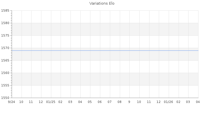Date d'inscription : 16/09/24. Donateur pour EchecsEmail : Non ( Cliquez ici pour soutenir EchecsEmail. ) Elo non arrondi:1533.5 ( 372 sur 445 joueurs ) Nombre de victoires :0 Nombre de nulles :0 Nombre de défaites :1 Temps de réponse moyen par coup : 0J 7H 47M 30S ( Moyenne sur 0 coups ). Rd ( Un petit rd indique un elo fiable ) : 255 Elo maximum atteint ( en étant classé ) :0 Elo maximum atteint cette année :0 Nombre coups joués : 2 Classement coupe : Inactif Points coupe : 0 Classement Coupe Magic Chess : Inactif Points Coupe Magic Chess : 0 Tournoi échelle : Nombre de tournois gagnés :0