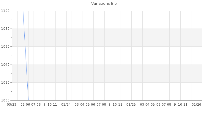 Date d'inscription : 11/11/18. Donateur pour EchecsEmail : Non ( Cliquez ici pour soutenir EchecsEmail. ) Elo non arrondi:962 ( 522 sur 459 joueurs ) Nombre de victoires :42 Nombre de nulles :6 Nombre de défaites :120 Rd ( Un petit rd indique un elo fiable ) : 141 Magic Elo:1279.91 Magic Rd : 155 Elo maximum atteint ( en étant classé ) :1320 Elo maximum atteint cette année :0 Nombre coups joués : 2502 Inscrit dans l' équipe:Du sucre et des vices Classement coupe : Inactif Points coupe : 1.16 Classement Coupe Magic Chess : Inactif Points Coupe Magic Chess : 0 Tournoi échelle : Inactif. Tournois gagnés : 17/03/2021 : Cat 0 : Victoire dans le tournoi n°22274 Nombre de tournois gagnés :1